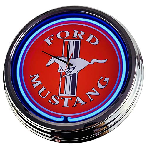 Neon klocka "Ford Mustang" väggklocka deko-klocka upplyst klocka USA 50-tals stil retro neon klocka matsal kök vardagsrum kontor (blå)