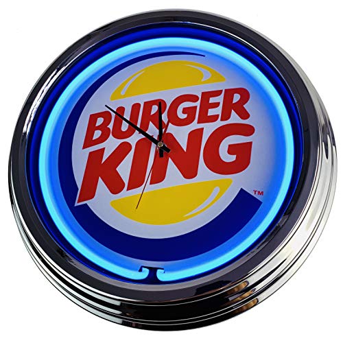 Neon Clock "Burger King" väggklocka dekor-klocka upplyst klocka USA 50-tal stil retro neon klocka matsal kök vardagsrum kontor (blå)