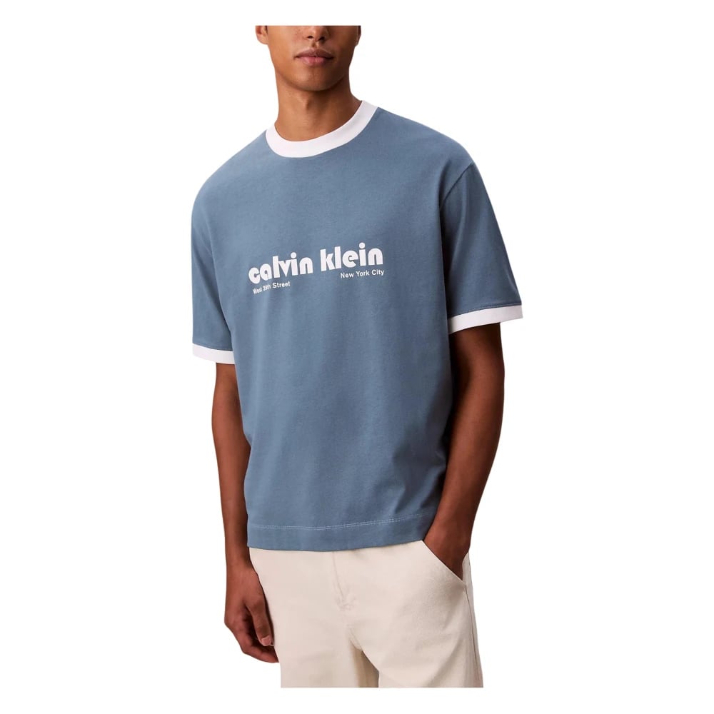 Calvin Klein Jeans Ss Retro Logo Ringer 16S Rlxd Te - Blue - S