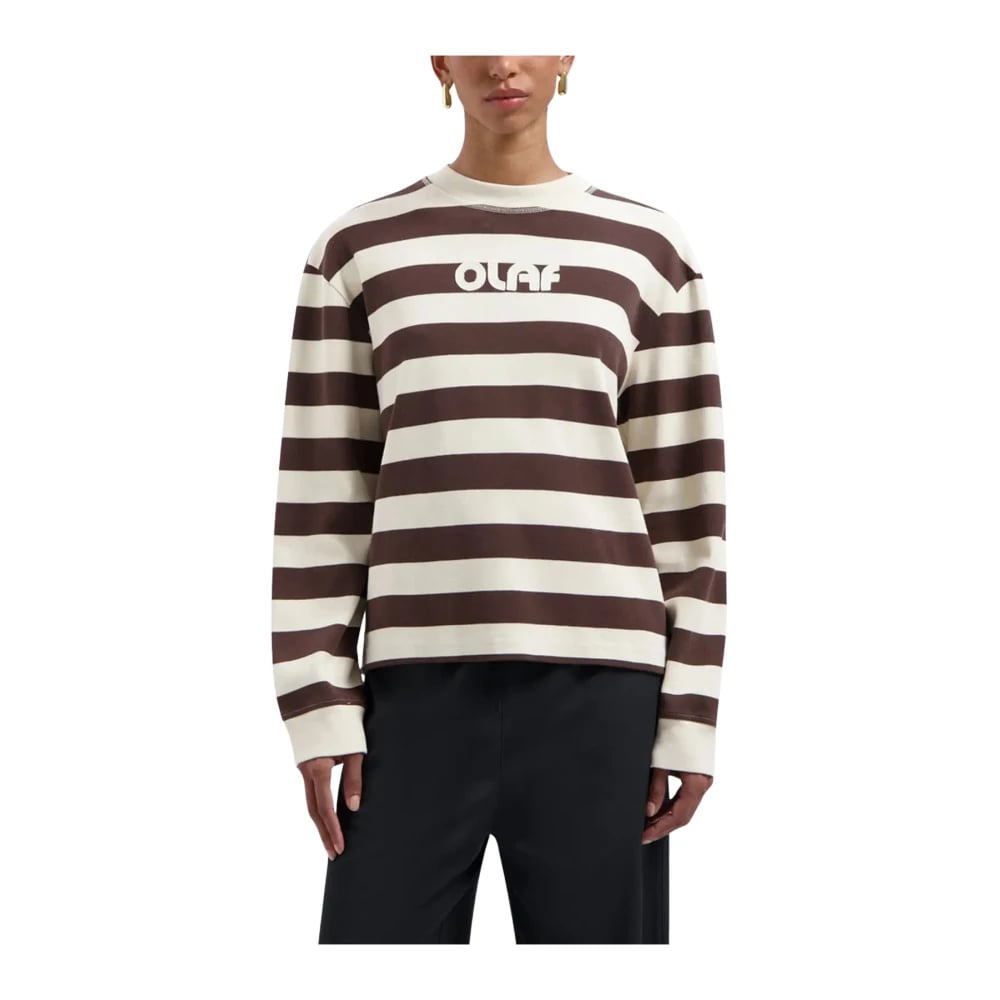 Olaf Hussein, Sweatshirts & Hoodies , Dam, S, Bomull, Striped Rib Retro Logo Crewneck Hot Fudge