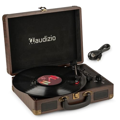 Audizio RP114W portfölj vinylskivspelare med inbyggda högtalare – retro vinylskivspelare med träfinish – bärbar skivspelare med högtalare – perfekt för vinylälskare