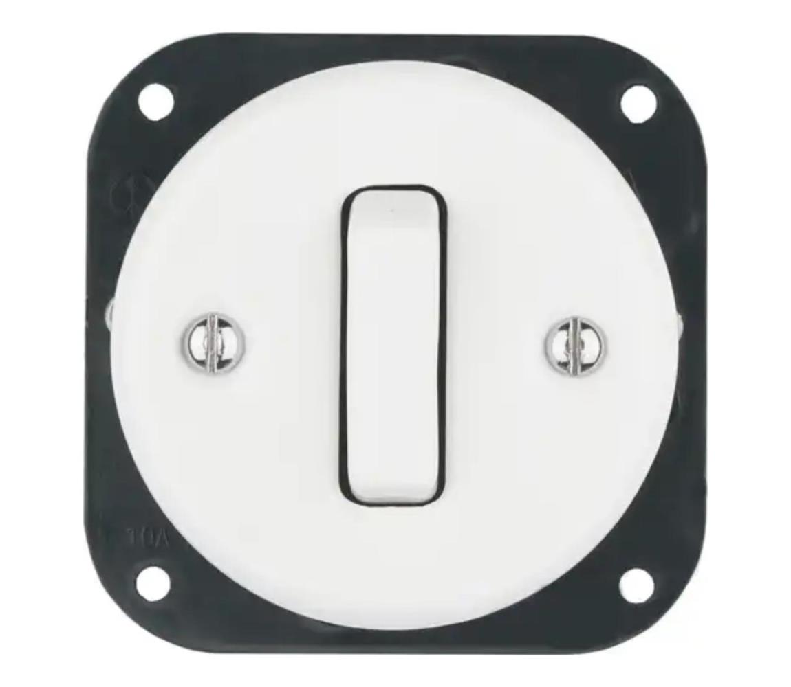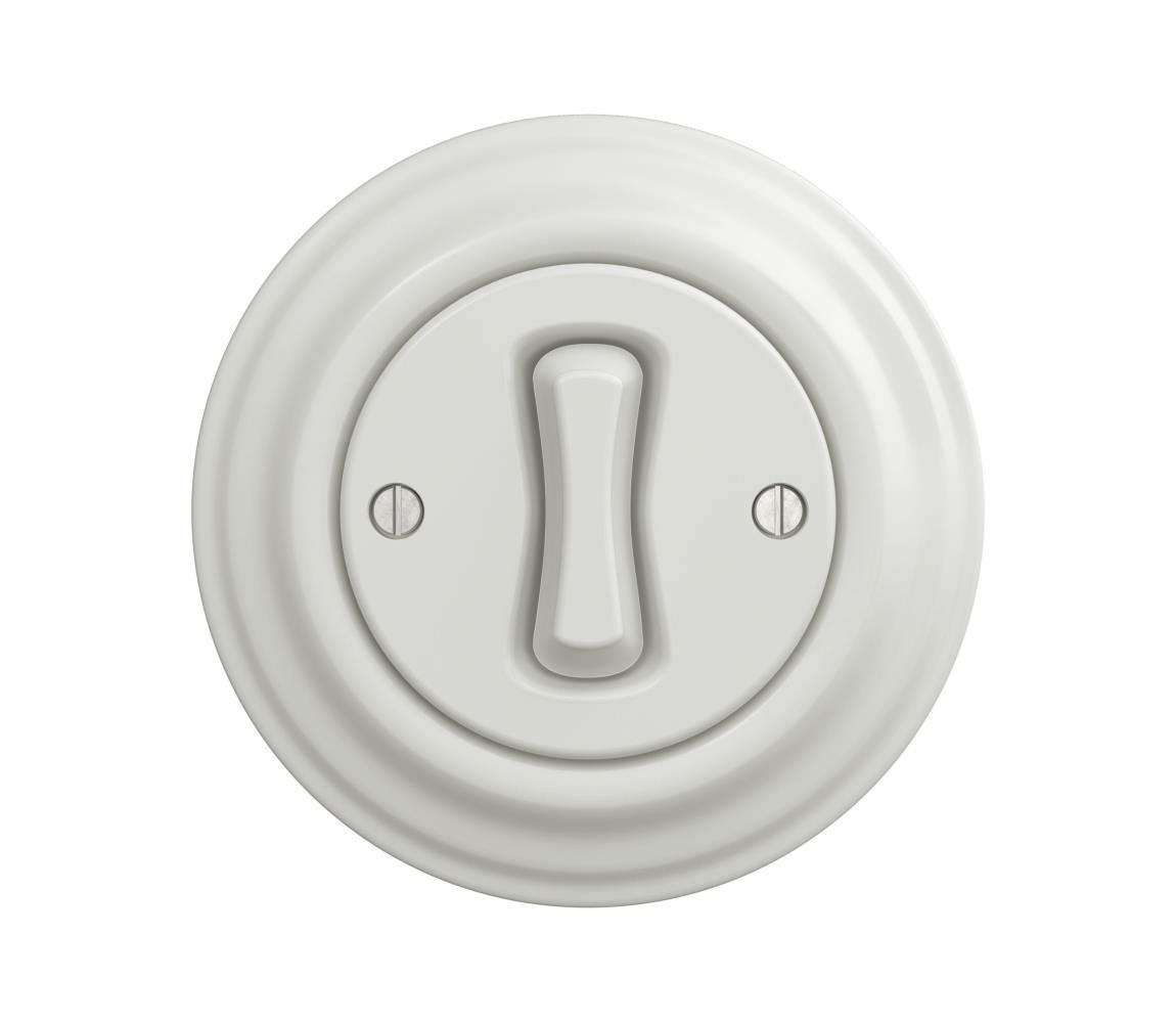 Retro vintage seriekopplare ytmonterad strömbrytare vit rund IP20 10A