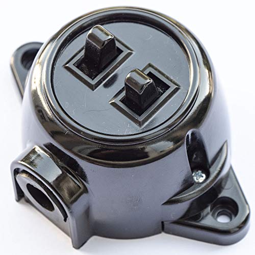 Strömbrytare, retro-utseende, ytmonterad, dubbel seriebrytare, vrid-av/växelbrytarinsats, 10A/250 V, IP20 svart, Retro bakelit-optik, glans, fäst på trä