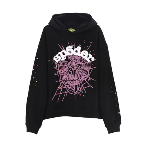 Sybnwnwm Punk huvtröja män spindelnät blast tryck sweatshirt retro Y2K grunge huvtröjor gotisk streetwear pullover, D-svart, M