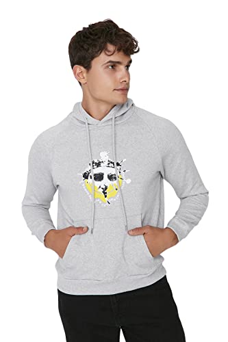 Trendyol Herr huva retro vanlig sweatshirt, grå melange, XL, gråmelerad, XL