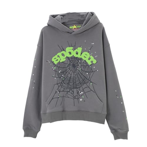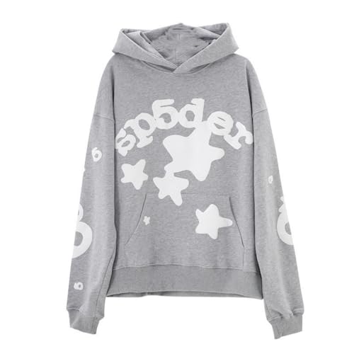 Sybnwnwm Punk huvtröja män spindelnät blast tryck sweatshirt retro Y2K grunge huvtröjor gotisk streetwear pullover, D-grå, S