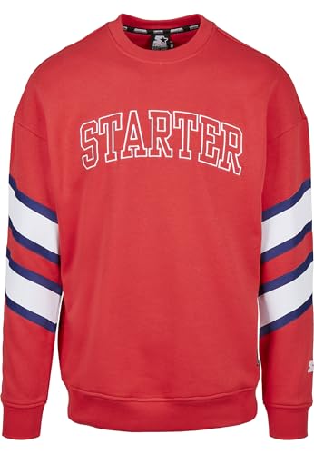 STARTER BLACK LABEL Herr tröja team front crewneck tröja med logo stick och patch, Color Block retro sweatshirt med rund hals, färg röd, storlek S till XXL, Startröd, S