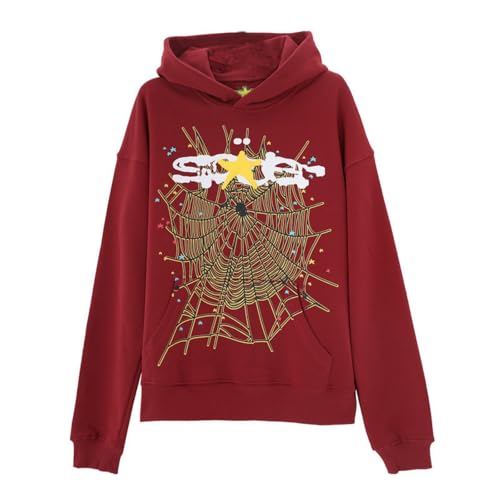 Sybnwnwm Punk huvtröja män spindelnät blast tryck sweatshirt retro Y2K grunge huvtröjor gotisk streetwear pullover, B-röd, L