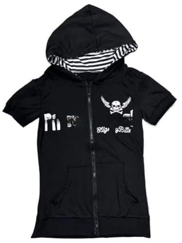 Cynefoa Kvinnor Y2K Blixtlås Grafisk Huvtröjor Gotisk Punk Skalle Sweatshirt Ledig Retro Mörk Estetisk Grunge Streetwear Emo Kläder 2025, Svart, M