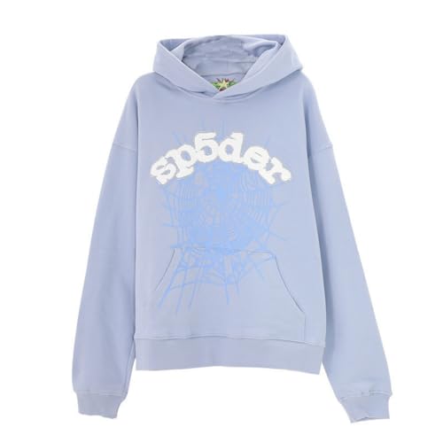 Sybnwnwm Punk huvtröja män spindelnät blast tryck sweatshirt retro Y2K grunge huvtröjor gotisk streetwear pullover, B-blå, S
