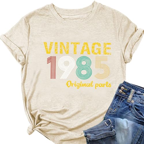 Vintage 1985 t-shirt för kvinnor 40-årsdag gåva född 1985 toppar retro rund hals kortärmad casual t-shirts, BEIgE, S