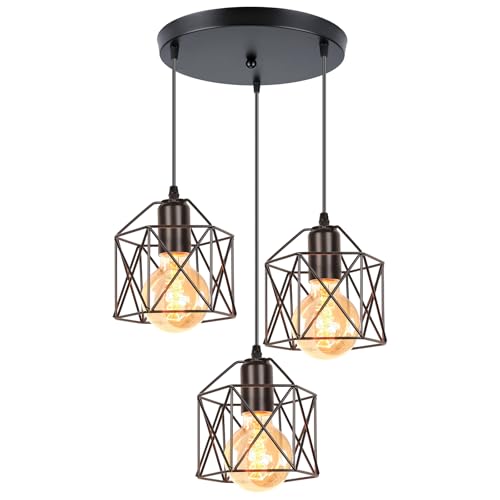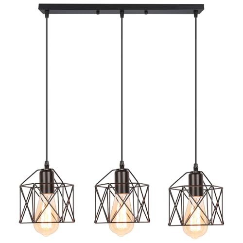 iDEGU hängande lampa med 3 lampor, vintagelampa i industriell design, sexkantig burlampskärm av metall E27 taklampa, retro pendellampa för matsal, sovrum, kök (balkar, svart)