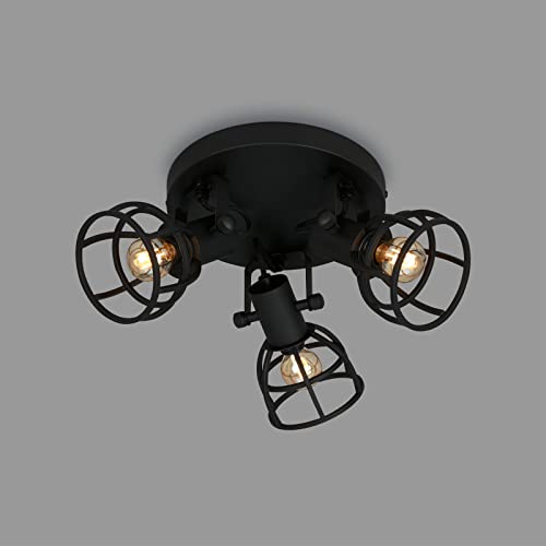 Briloner Leuchten taklampa retro med gallerskärm, taklampa med 3 ljuskällor, vintage, E14-sockel max. 25 watt, justerbara lampskärmar, rustik takfläck av stål, svart 2669-035
