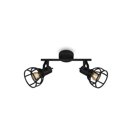 Briloner Leuchten taklampa retro med gallerskärm, taklampa med 2 ljuskällor, vintage, E14-sockel max. 25 watt, justerbara lampskärmar, rustik takfläck av stål, svart 2669-025