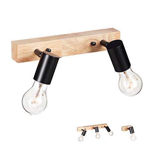 BRILONER Lampor – spotlampa, takspotlight, retro, taklampa vintage, roterande och svängbar, 2 x GU10, max. 35 watt, trämetall, svart-vit, 280 x 100 x 135 mm (L x B x H)