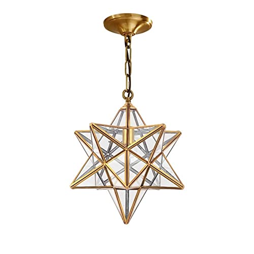Moravian Star Pendellampa med klart glasskydd, vintage ljuskrona lampa Rustik industriell Edison hänglampa Retro taklampa 1-Light, mässing