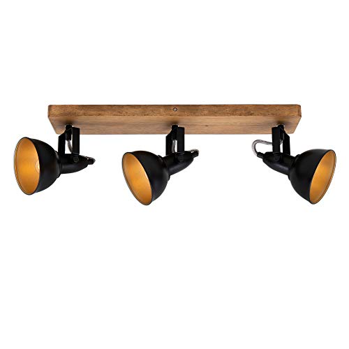 Briloner Leuchten Spotlampa, takspotlight retro, taklampa vintage, spotlights kan roteras och svängas, 3x E14, max. 25 watt, metallträ, svart guld, 500 x 110 x 157 mm (LxBxA)