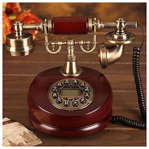 Antik telefon trä sladd urtavla telefon retro fast telefon vintage stil roterande urtavla hemtillbehör dekor