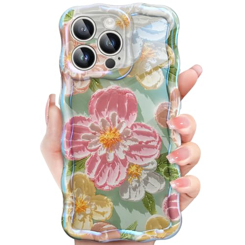 JETech Gullig Skal för iPhone 13 Pro Max 6,7 Tum, Färgglad Retro Oljemålning Blommig Design Lockig Vågram, Stilfull Blomma TPU Mjuk Skyddande Telefon Case för Kvinnor och Flickor (Rosa Blomma)