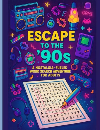 Escape to the ’90s: A Nostalgic Word Search Puzzle Book for Adults: Featuring Retro Games, Slang, TV Shows, Toys, and Music from the 1990s