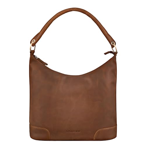 STILORD "Tessa" Handväska Dam Läder Stor Shopper Läderväska Hobo Väska Elegant Retro Axelväska Tote Bag i Äkta Läder Farbe:Messina-brun