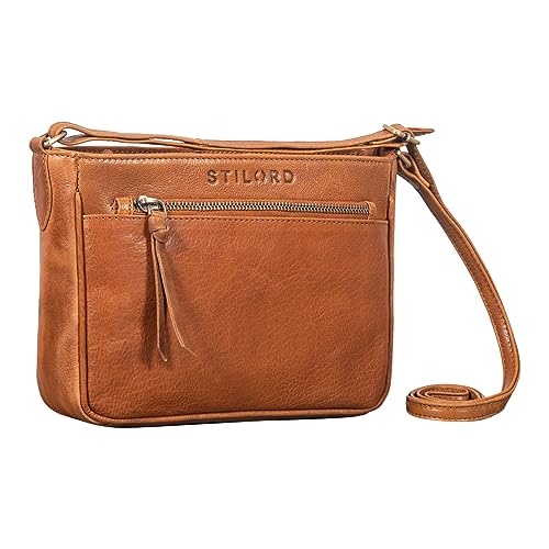 STILORD "Vera" vintage läder axelväska dam handväska liten äkta läder väska retro damhandväskor antik axelväska äkta läder Farbe:Cannes-brun