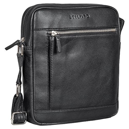 STILORD "Alwin" axelväska herr läder axelväska män tablettväska 10 tum retro axelväska äkta läder retro väska läder Farbe:Svart