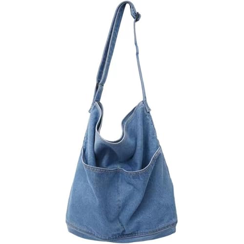 ROUROU Axelväska i denim för kvinnor hobbo tygväska vardaglig canvasväska retro crossbody väska stor kapacitet handväska, BLÅ, Large