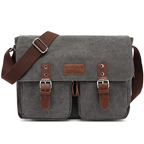 FANDARE Ny retro Messenger Bag axelväska 14 tums laptopryggsäckar män kvinnor väska kurirväska multifunktionell canvas, GRÅ, 14 Zoll, Canvas