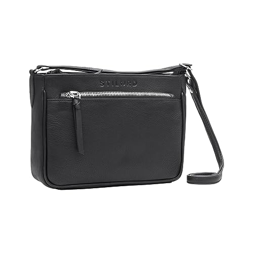 STILORD "Vera" vintage läder axelväska dam handväska liten äkta läder väska retro damhandväskor antik axelväska äkta läder Farbe:Obsidian-svart