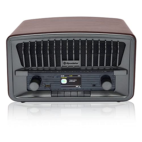 Roadstar DAB nostalgi retroradio med Bluetooth och CD/MP3-spelare i trähölje med larmfunktion (USB, AUX-In, RDS), 15 watt RMS, brun