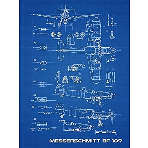 Artery8 Messerschmitt Bf 109 Fighter Plane 2 Blueprint plan oinramad väggkonst tryck affisch heminredning premium