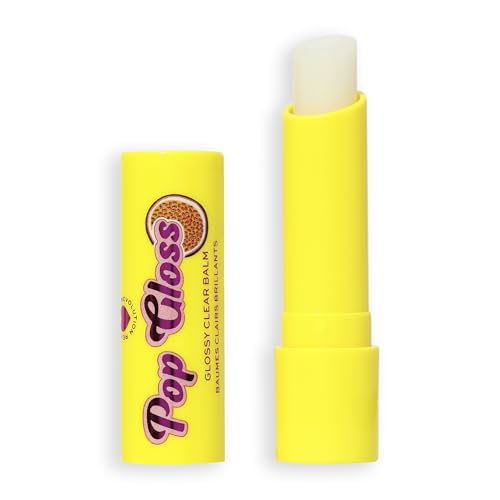I Heart Revolution Pop Gloss Balm, fuktgivande läppbalsam med glansig finish och färgkänsla, vegan och grymhetsfri, passionsfrukt transparent