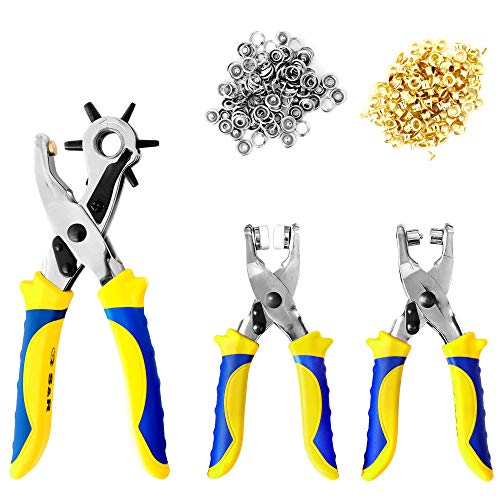 S&R MEISTER Revolver Håltångssats, ögletång med 100 st. öljetter 4 mm, tryckknappstång med 25 tryckknappar 9 mm; rörtång med 6 utbytbara hålrör 2/2,5/3/3,5/4/4,5 mm