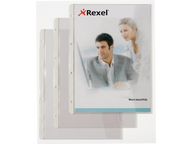 Rexel 70676 Crystalfile 300 lateral flik infogar papper, paket med 34, vit