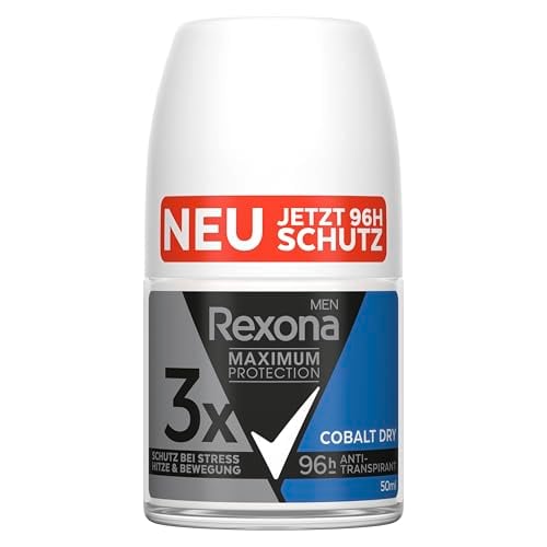 Rexona Män Maximum Protection Deodorant Roll-On Cobalt Dry Anti-Perspirant med 3 x skydd vid stress, värme och rörelse 96 timmar extremt skydd 50 ml