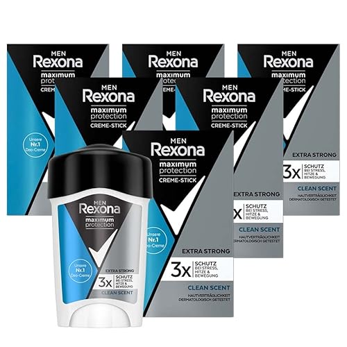 Rexona Män Maximum Protection Anti-Perspirant Deodorant Cream Clean Scent med 48 timmars skydd mot stark svettning och kroppslukt 45 ml, 6 stycken