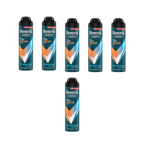 6 x Rexona Män Nonstop Protection Deodorant Spray Thermo Fresh Anti-Perspirant med 72 timmars skydd mot svett och kroppslukt 150 ml