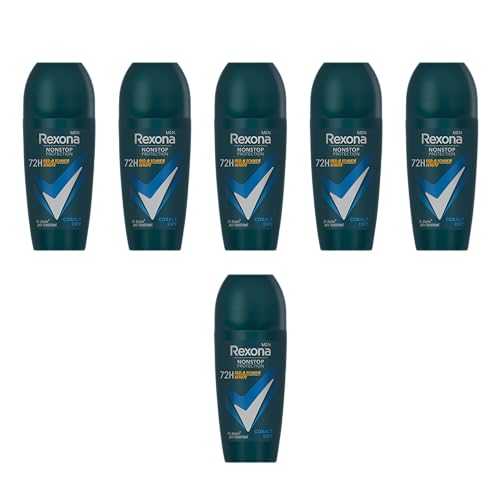 6 x Rexona män Nonstop Protection Anti-Perspirant Deodorant Roll-On Cobalt Dry med 72 timmars skydd mot svett och kroppslukt 50 ml
