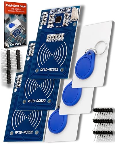 AZDelivery 3 x RFID-Kit RC522 med Läsare, Chip och Kort 13,56MHz SPI kompatibel med Arduino och Raspberry Pi inklusive en E-Book!