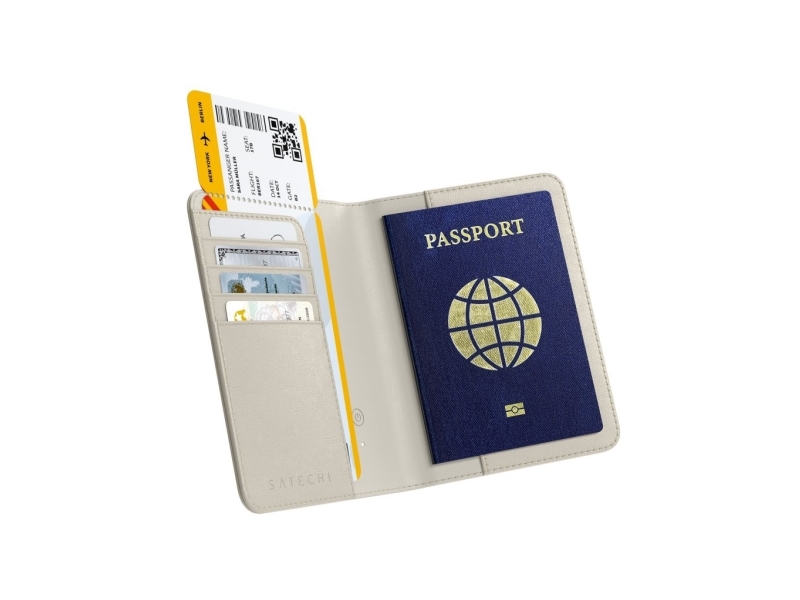 Satechi Vegan Leather Passport Case With Apple Find My Tracker And Rfid Security For Stylish Travel - Sand