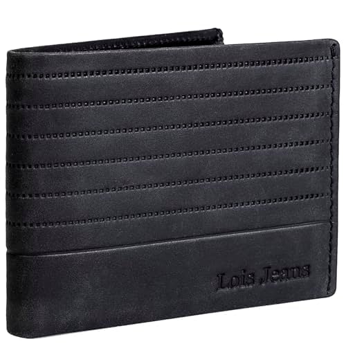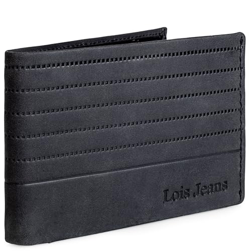 Lois - Plånbok korthållare för man äkta läder. Inre myntväska med knapp. Fack för kort och sedlar. RFID-SKYDD. Presentförpackning., Svart
