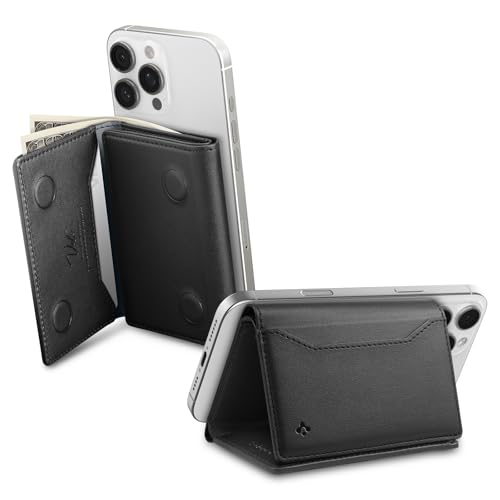 Spigen Valentinus S Magfit MagSafe Korthållare med 7 Kortfack, Sedelfack, Kompatibel med iPhone 17/16/15, andra MagSafe-modeller och Google Pixelsnap, Apple-läder, RFID-skydd - Svart