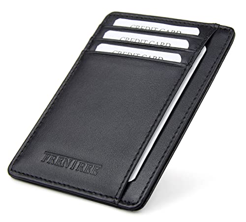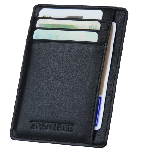 Frentree® Korthållare av 100% äkta läder, mycket platt och platsbesparande, för upp till 10 kreditkort, med RFID-skydd och snabbåtkomstfack, svart