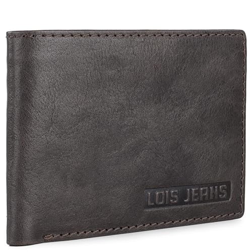 Lois - Plånbok korthållare för man äkta läder. Myntväska med knapp. Fack för kort och sedlar. RFID-SKYDD. Presentförpackning., Mörk Browm