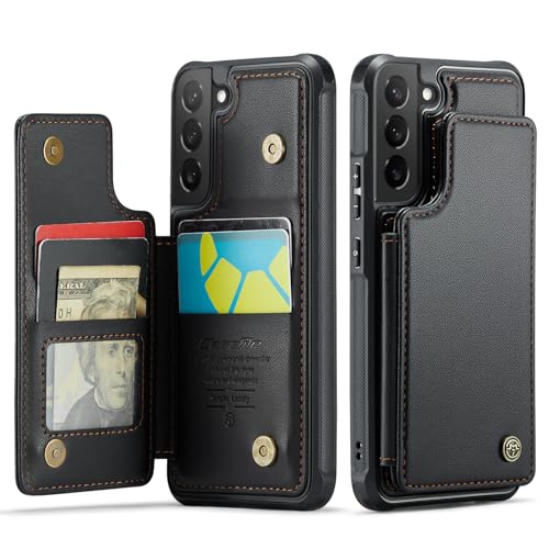 UEEBAI Fodral för Samsung Galaxy S22 5G, premium PU-läder vikbart fodral silikon mobiltelefonfodral med 4 korthållare stativfunktion magnetspänne [RFID anti-stöld skydd] plånbok flip fodral – svart