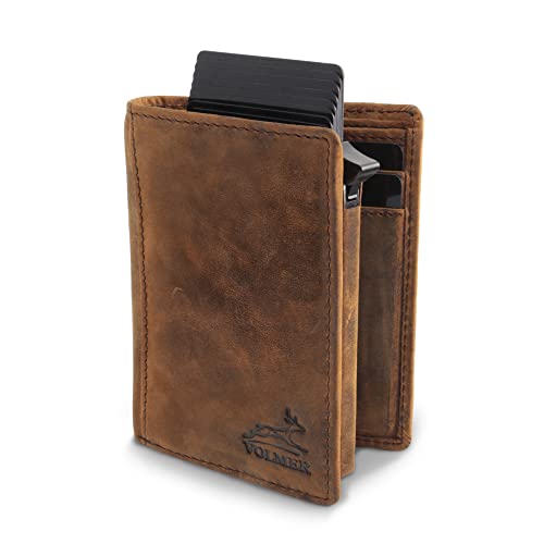 Fa.Volmer ® Herrplånbok av äkta läder | stående format | fack för kort och sedlar | myntfack | inkl. avtagbar korthållare (RFID-skydd) | Olika modeller, Typ 01 brun, Mini, Klassisk