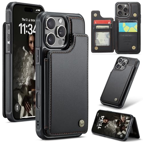 ANROD för iPhone 16 Pro smal plånbok och handväska, med stativ/korthållare RFID-blockerande läder magnetisk stängning, stöttåligt skydd för iPhone 16 Pro, med kortplatser (svart)