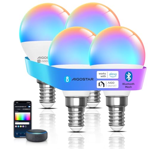 Aigostar - G45 Mesh Bluetooth Smart Lampa. 2700–6500K, RGB Dimbar. E14-gänga, 6,5W, 555lm. Smart LED-lampa Kompatibel med Alexa. Fjärrkontroll ingår. 4-pack