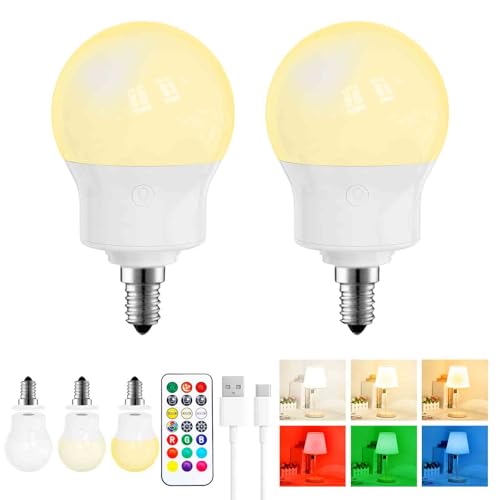 Uppladdningsbar LED-Glödlampa E14 med Fjärrkontroll, Dimbar Magnetisk Batteridriven Lampa 480LM, 3 Färgtemperaturer + 9 RGB Färger, 3 Timers, För Lampor utan El, Camping & Nödbelysning 2 PACK